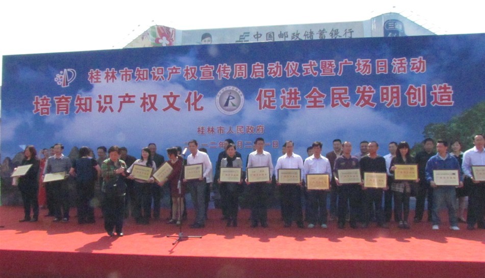 市人大常委會副主任石春蓮、副市長徐鋒、市政協副主席劉明昱出席啟動儀式,并為我市獲得廣西著名商標的18家企業頒發獎牌。