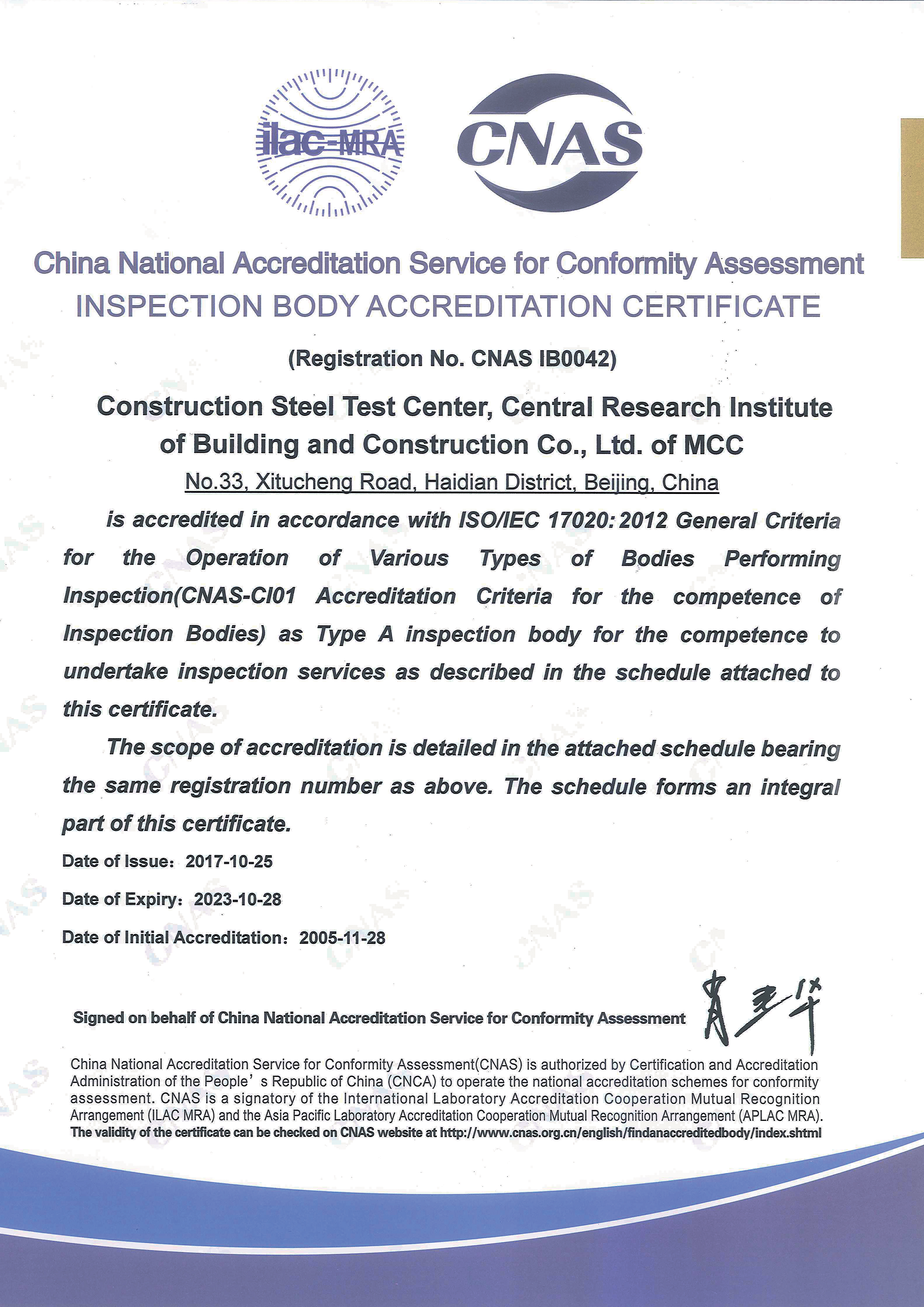 中冶(北京)冶金產(chǎn)品認(rèn)證公司獲認(rèn)監(jiān)委批準(zhǔn)