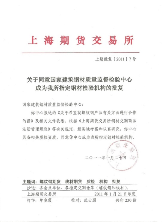 上海期貨交易所指定鋼材檢驗(yàn)機(jī)構(gòu)